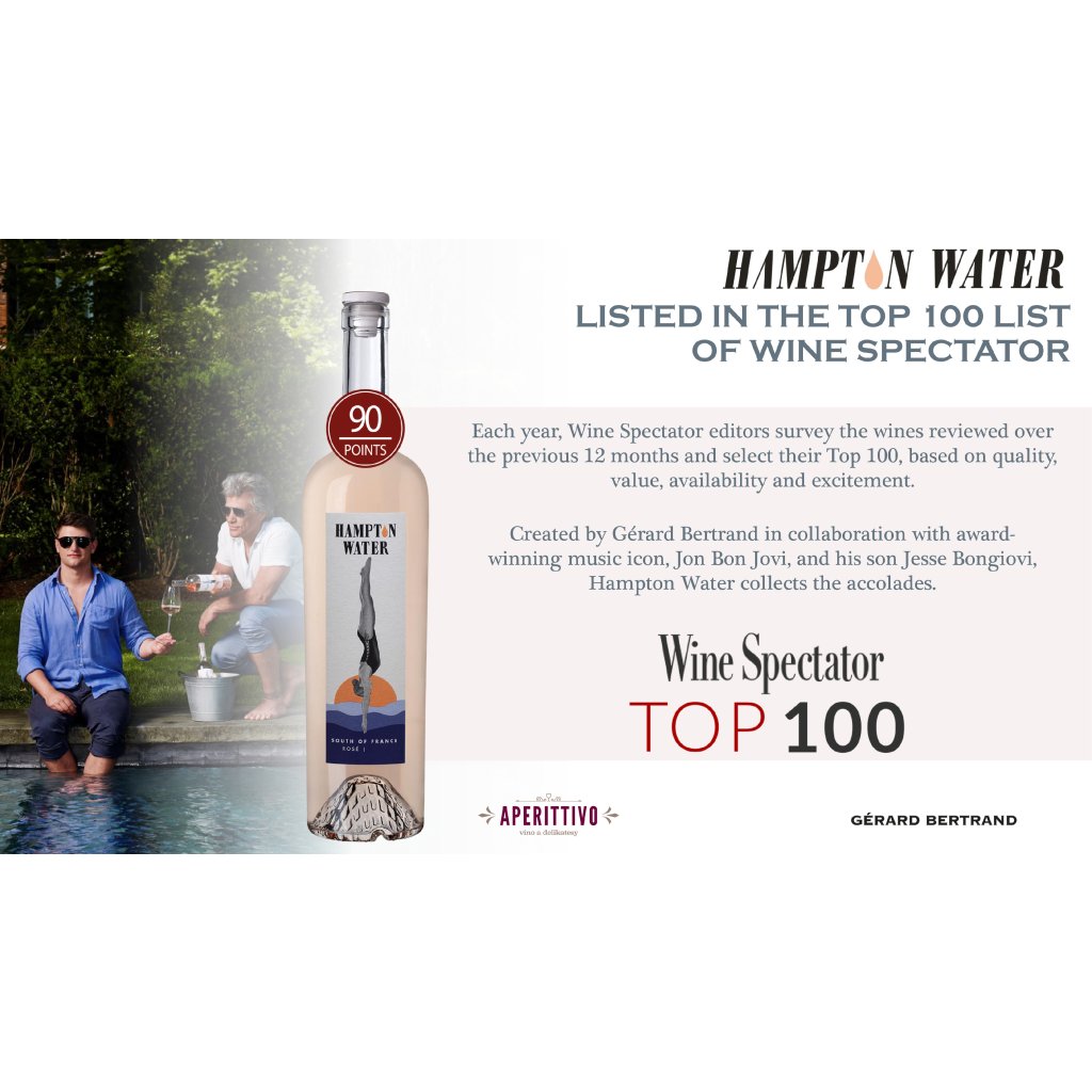 Premiové rosé "Hampton Water" bylo vyhodnoceno v roce 2021 v soutěži BWW "Best wines of the world" jako nejlepší rosé světa!!! Gérard Bertrand byl v roce 2023 zvolen letos světovým vinařem roku!